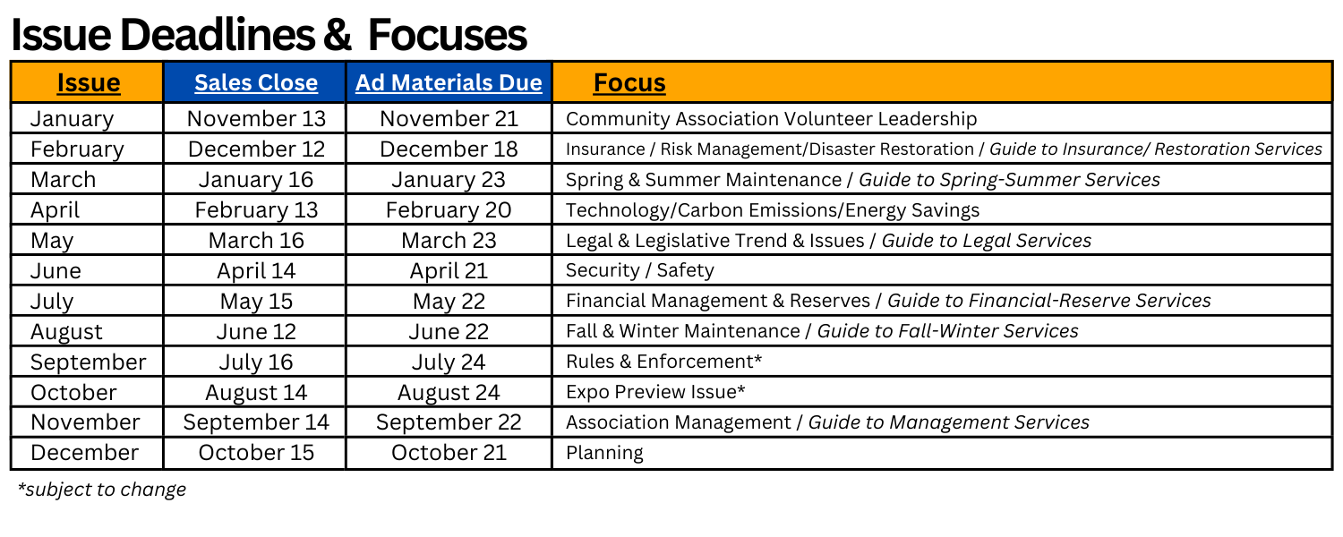 2026 CONDO MEDIA DEADLINES & SPECIFICATIONS